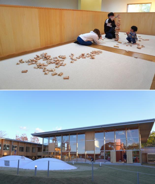 だんだんと奥へ進むと、ワークショップの広場や、木のブロックで遊ぶ広場など、ワクワクが止まりません。「本物の良い木に触れてほしい」とヒノキを使っている場所もあるので、ぜひ探してみてくださいね。