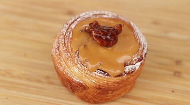 土日は行列が絶えない人気店。生地に自家焙煎のコーヒー豆を使用した『プレスロール』。