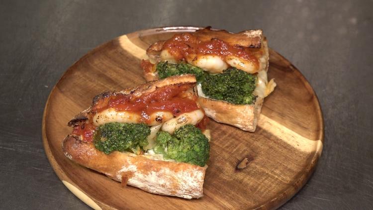 大きめのエビに自家製のトマトソースをたっぷりかけて焼き上げた一品。電子レンジで1分温めると、よりおいしさが引き立ちます。