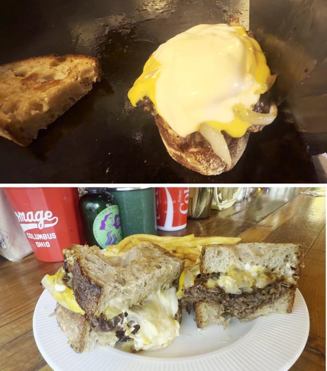 「奥添製パン」(糸島市)のパンを使用したこだわりのサンドイッチ。 少し酸味のあるカンパーニュ生地が、和牛のスライス肉や淡路島産グリルドオニオン、そして3種類の濃厚なチーズの味わいを見事に引き立てます。パンのほどよい酸味と具材のバランスが絶妙で、最後まで飽きさせません。