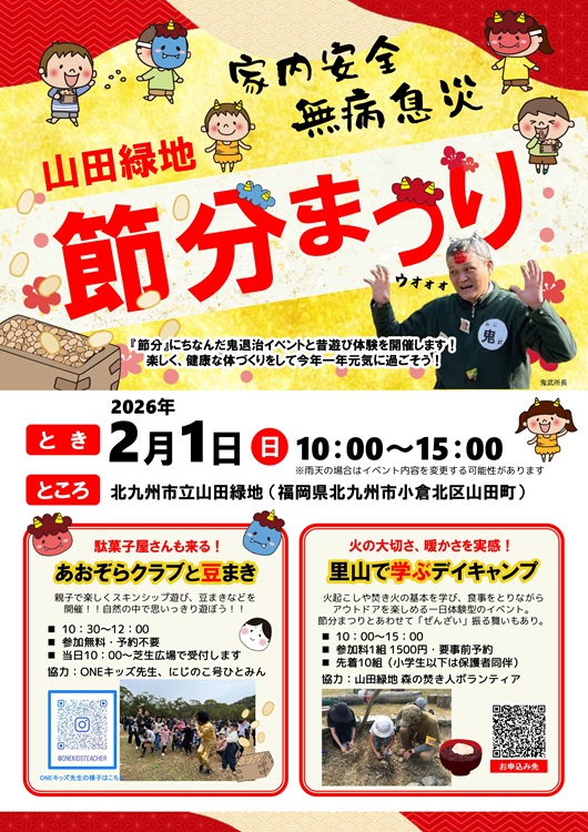 【1/25・2/1】本気の鬼退治で寒さを吹き飛ばせ!『山田緑地 節分まつり』(北九州市小倉北区)【イベント】