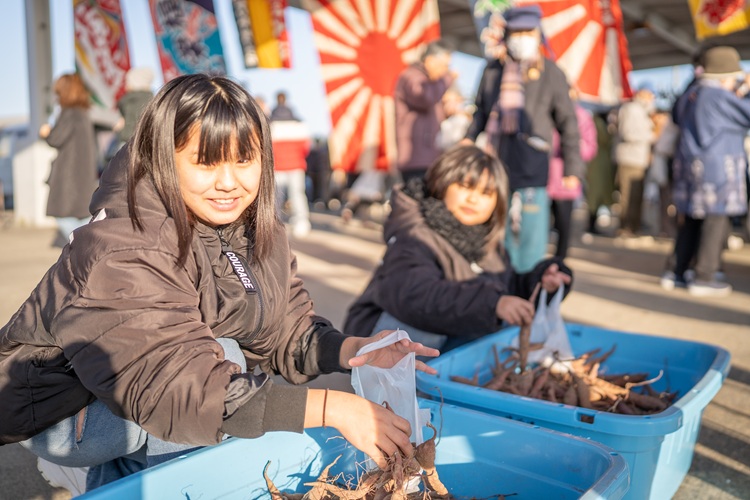 さらに、お楽しみは買い物だけではありません!会場では、吉富町産のコウイカを使った「いかの炊き込みご飯」が数量限定で無料配布されるほか、今町が推す地元産のサツマイモ「紅はるか」の詰め放題も実施されます。