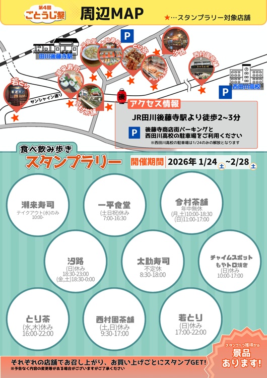 注目のメイン企画は、商店街を巡る「食べ歩きスタンプラリー」。高校生たちが実際に自分たちの足で見つけた「おすすめグルメ」を楽しみながら、スタンプを集めることができます。このスタンプラリーは2月28日(土)まで実施。当日だけでなく、約1カ月間にわたって商店街の魅力をじっくり味わえるのが魅力です!スタンプ1つから景品がもらえるそうですよ♪