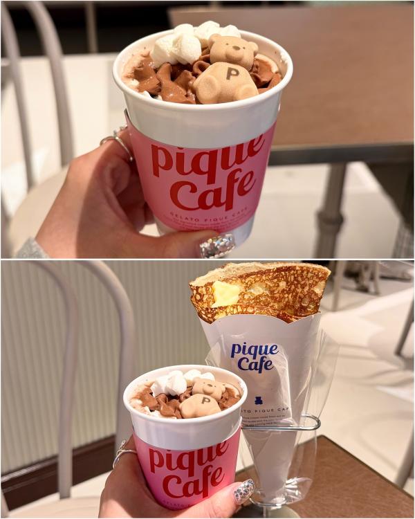 上にはころんとしたマシュマロと、ピケカフェのアイコン”ピケベア”のマシュマロが添えられていて、見た目のかわいさにも心がほぐれます。