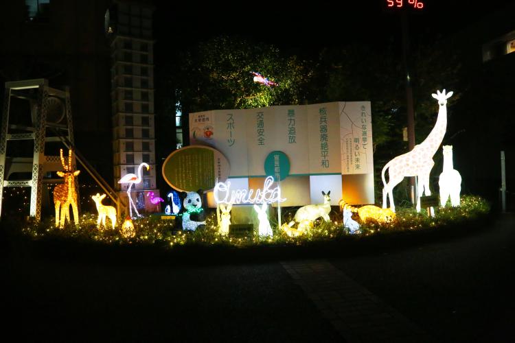 大牟田市役所前に現れたキラキラ輝く「光の動物園」など。