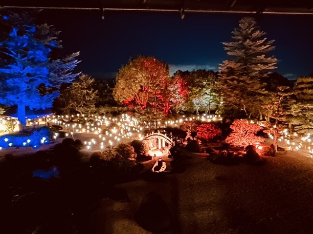 2026年の注目は、期間限定の夜間開館ライトアップ。期間中の土日祝日限定で、普段は見ることができない夜の旧伊藤伝右衛門邸が公開されます。竹灯籠や照明装飾によって、広大な回遊式庭園が幻想的な光に包まれる様子は、まさに息をのむ美しさ。昼間の華やかな雰囲気とは一変、ドラマチックで優雅な空間をじっくり堪能できます。