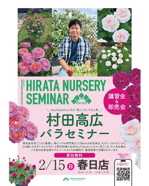 また、来週2月15日(日)に春日店で開催されるのは、YouTubeチャンネル「花ごころ」で人気を集めているバラの専門家・村田高広さんが講師を務めるバラセミナー。