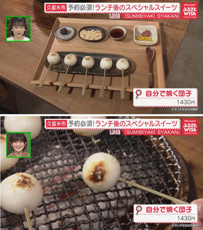 ほかにも、自分で焼き加減を調節できる「自分で焼く団子」(1430円)など、体験型のメニューも充実しています。