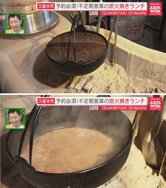 店内でひと際目を引く大きな「いろり」も、ご主人の手作り。そのいろりに吊るされた鍋の中には、ランチに付くアツアツの「お味噌汁」が用意されています。神田謙信リポーターも「ご主人の手作り、すごすぎないですか?」と、随所に光る職人技に感動の様子です。