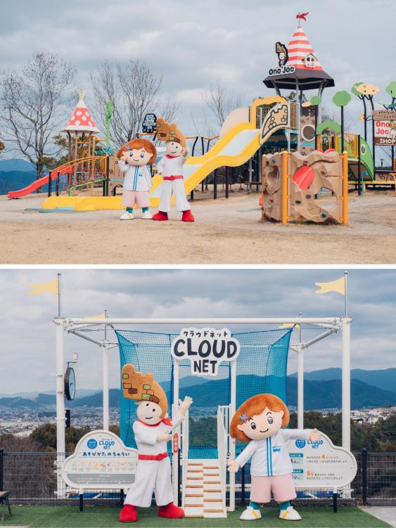 2022年に登場した大野城市PRキャラクター「大野ジョー」をモチーフにした複合遊具「大野ジョーと遊ぶ城(じょう)」や、子どもたちが飛び跳ねる巨大トランポリン「クラウドネット」など、多彩な遊具が揃う。