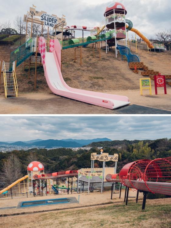 リニューアルの目玉は、2024年に新設された大型複合遊具「スライダーランド」。長いローラーコースターが特徴で、6歳から12歳向けの遊具だが、全3段階に分かれており最初のローラーコースターは3歳から6歳の幼児でも楽しめる設計になっている。高台から絶景を眺めながら滑り降りる爽快感は、子どもたちに大人気だ。