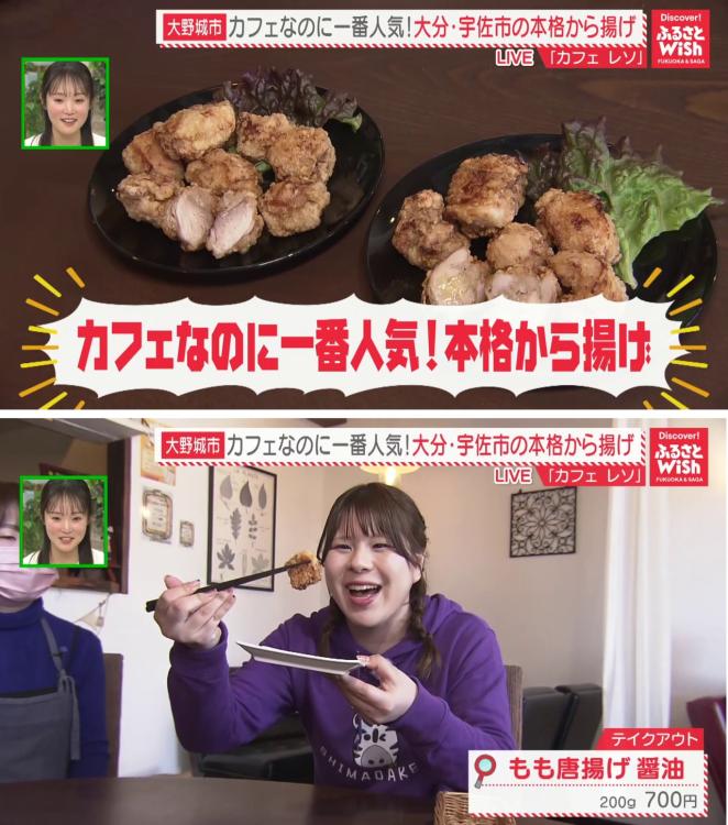 「肉汁とともに、しっかりお醤油の味が染みていておいしい!」と、大川リポーターも絶賛。お酒のおつまみや夕食のおかずにも合う、カフェの枠を超えた本格派の逸品です。