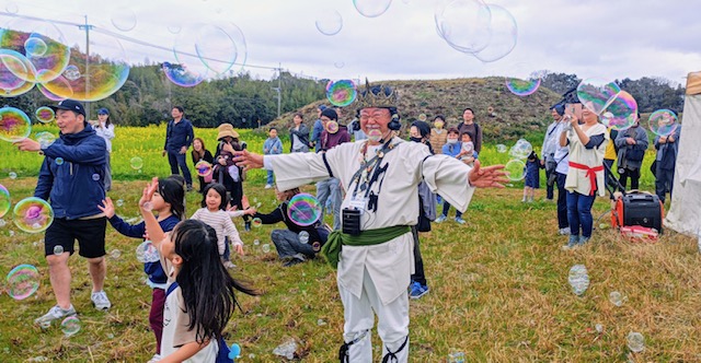 大人も子どもも夢中になれる体験コーナーも充実。昔ながらの火起こしや弓矢の的当て、首かざり作り、たたき染めといった古代体験ができます。お腹が空いたら、牛乳を使ったクリーミーな古代スープ「飛鳥汁」をどうぞ!ほかほかで優しい味わいのスープは、限定300杯でおまけ付きです。特設舞台での和太鼓や雅楽の調べが響き渡る中、シャボン玉ショーも行われ、笑顔あふれる一日になりそうです。