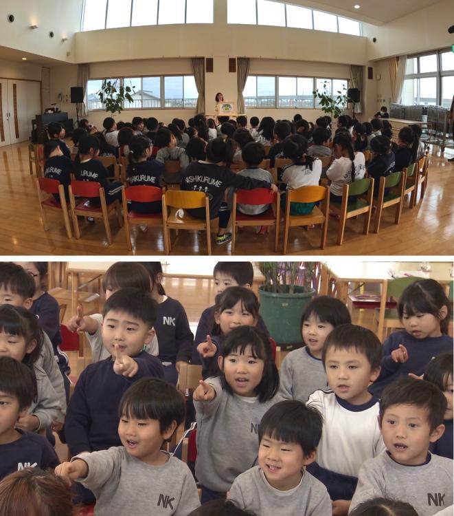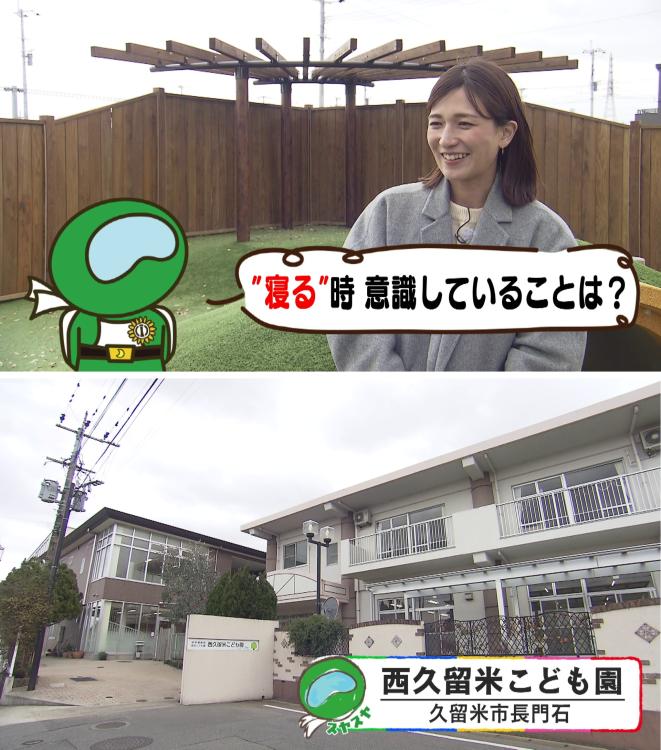 かなお姉さんと一緒にナビゲートするのは、どこでも眠れるのが特技、緑色のスーツに身を包んだ「スヤスヤマン」。今回は、福岡県久留米市にある『西久留米こども園』を訪れ、免疫について考える勉強会を実施しました。