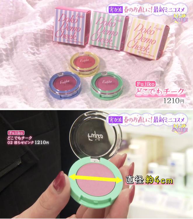 「ミニチークにしては小さすぎませんか!?」と池松リポーターも驚いたのが、「Fujiko どこでもチーク」(1210円)です。