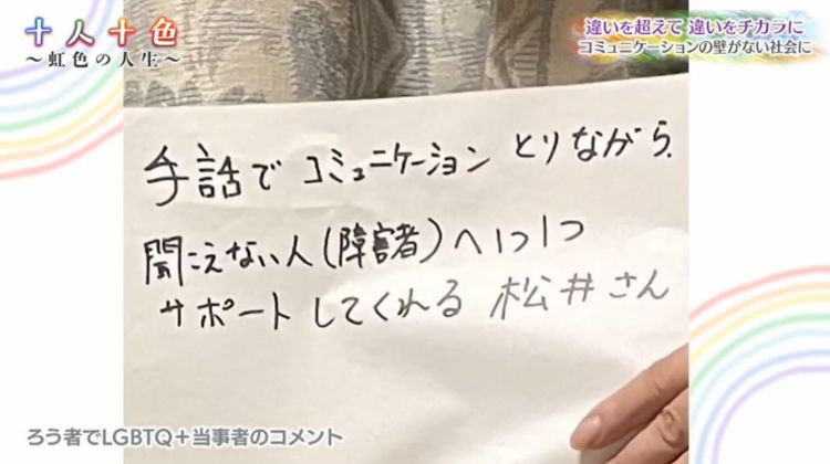 あるとき、松井さんのところには、ろう者のLGBTQ+当事者から「気さくで、理解を深めようとする姿勢に、勇気をくれてます」 「手話でコミュニケーションとりながら、聞こえない人(障がい者)へ1つ1つサポートしてくれる松井さん」といったコメントが寄せられました。