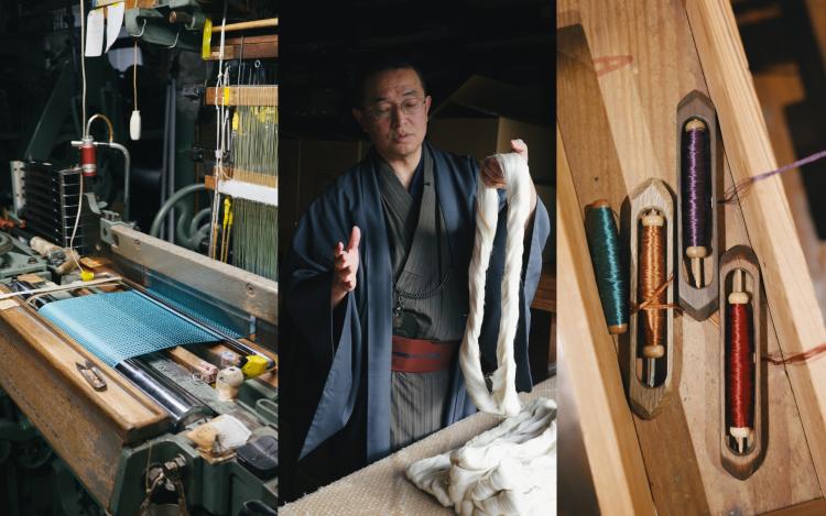 「美しいものは、美しい場所からしか生まれないんです」。そう穏やかに笑うのは、6代目の西村総一郎さん。西村さんの朝は、工場の掃除から始まります。隅々まで整えられた清浄な空間で、雑念を払って仕事に向き合う。その潔い姿勢こそが、西村織物が誇る「品格」の源泉です。安易な価格競争に走らず、価値に見合うものだけを届ける。先代から受け継がれてきたその強い信念が、織物一つひとつに揺るぎない説得力を与えています。