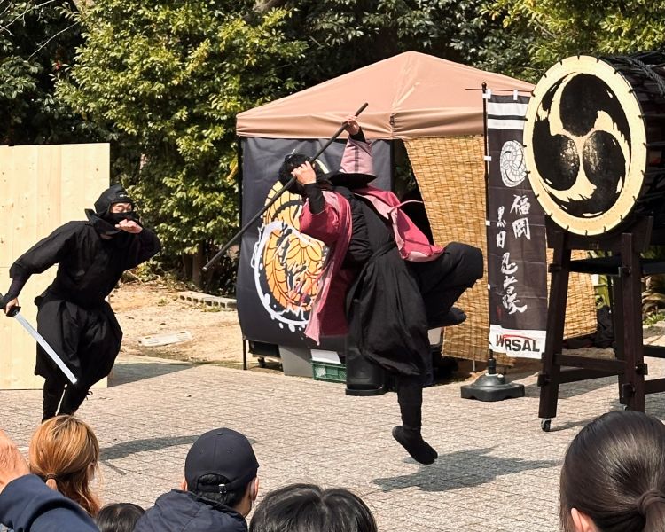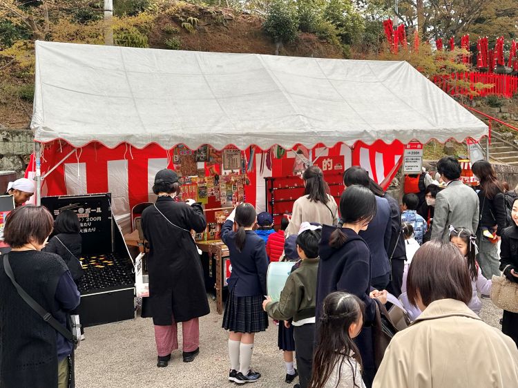 境内に一歩足を踏み入れると、射的や輪投げ、スーパーボールすくいなど、おなじみの縁日がずらりと並びます。さらに、子どもたちが大興奮すること間違いなしの「忍者ショー」に加え、忍者気分を味わえる「忍術体験(有料)」も開催!親子で一日中楽しめるイベントが満載です。
