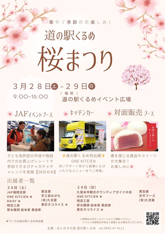 【3/28・29】『道の駅くるめ 桜まつり』(福岡・久留米市)
