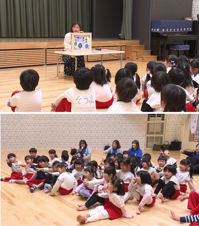 この日は、年中から年長の園児41人が参加し、紙芝居を通して、私たちの体を守る「免疫」について学びました。
