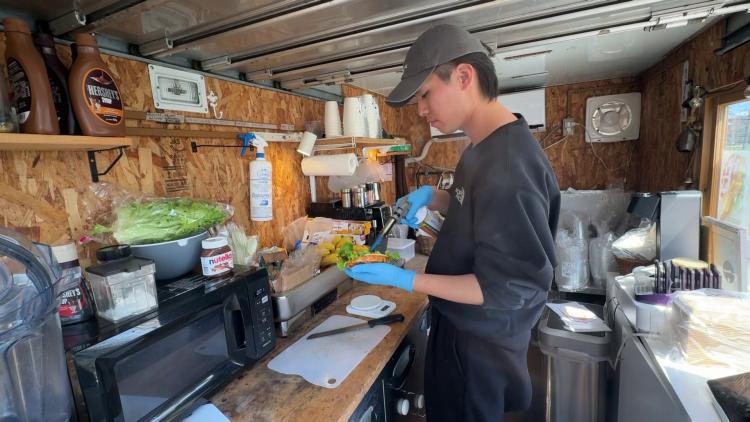 JR波多江駅から徒歩10分。2023年にオープンした、クロッフルを中心としたキッチンカーカフェ。
