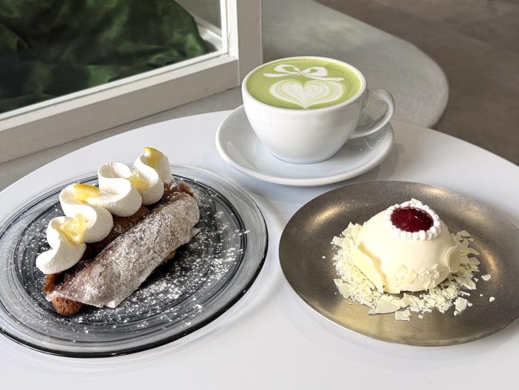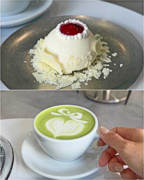 抹茶ラテには、リボンのラテアートが施されており、思わず写真に収めたくなる可愛らしさも印象的でした。