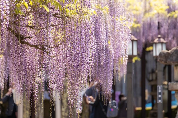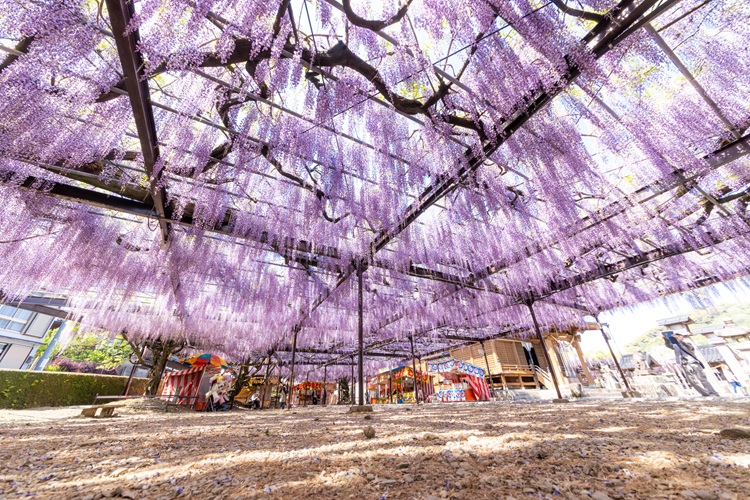 福岡県八女市黒木町の「素盞嗚(すさのお)神社」で、4月10日(金)から『八女黒木大藤まつり』がスタートします。約3,000平方メートルもの大きな藤棚から、1メートルを超える花房が降り注ぐ様子は、圧巻のひとこと。力強く咲き誇る大藤のパワーを、ぜひ間近で感じてみてください。