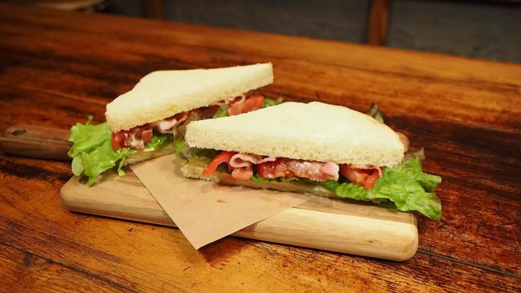 アメリカ産のしっかり燻製されたスモーキーなベーコンを、カリカリになるまで焼いてサンド。