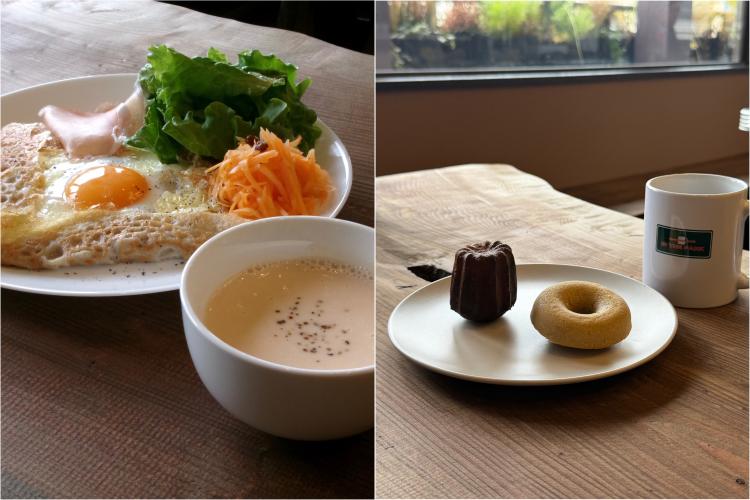 今回は「グリーンリーフと生ハムのガレット」(1,000円税込)と、「ドーナツのコーヒーセット」(1,000円税込)、そして「カヌレ」(250円税込)を注文しました。