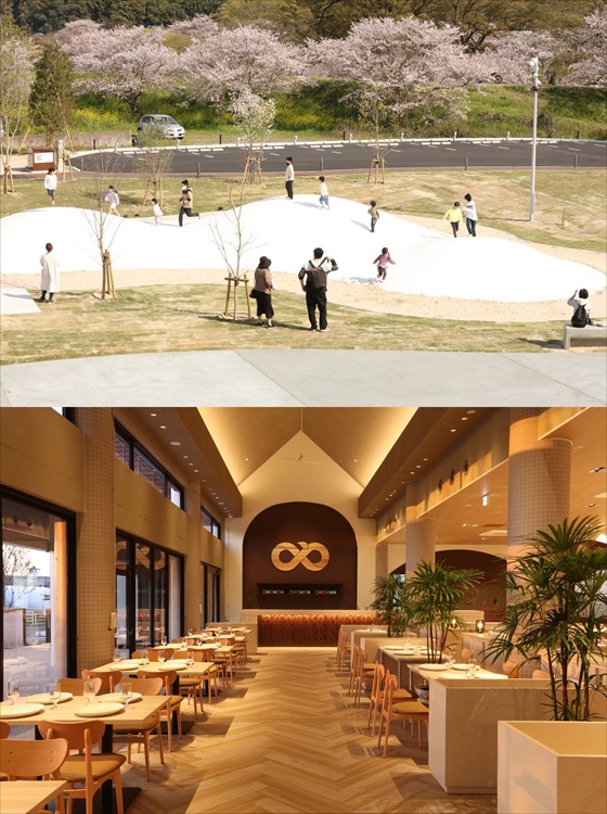 イベントを楽しんだ後は、天然温泉でリフレッシュしたり、クラフトビールや地元の旬が詰まった料理を楽しんだりできるのも「べんがら村」の魅力。子どもたちは無料のトランポリンで遊ぶこともできますよ。
